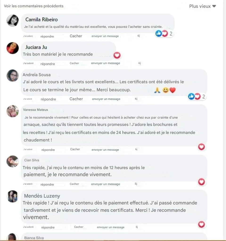 Vous recevrez 5 certificats de fin de formation, tous valables sur l’ensemble du territoire national, prêts à être imprimés ou présentés partout.