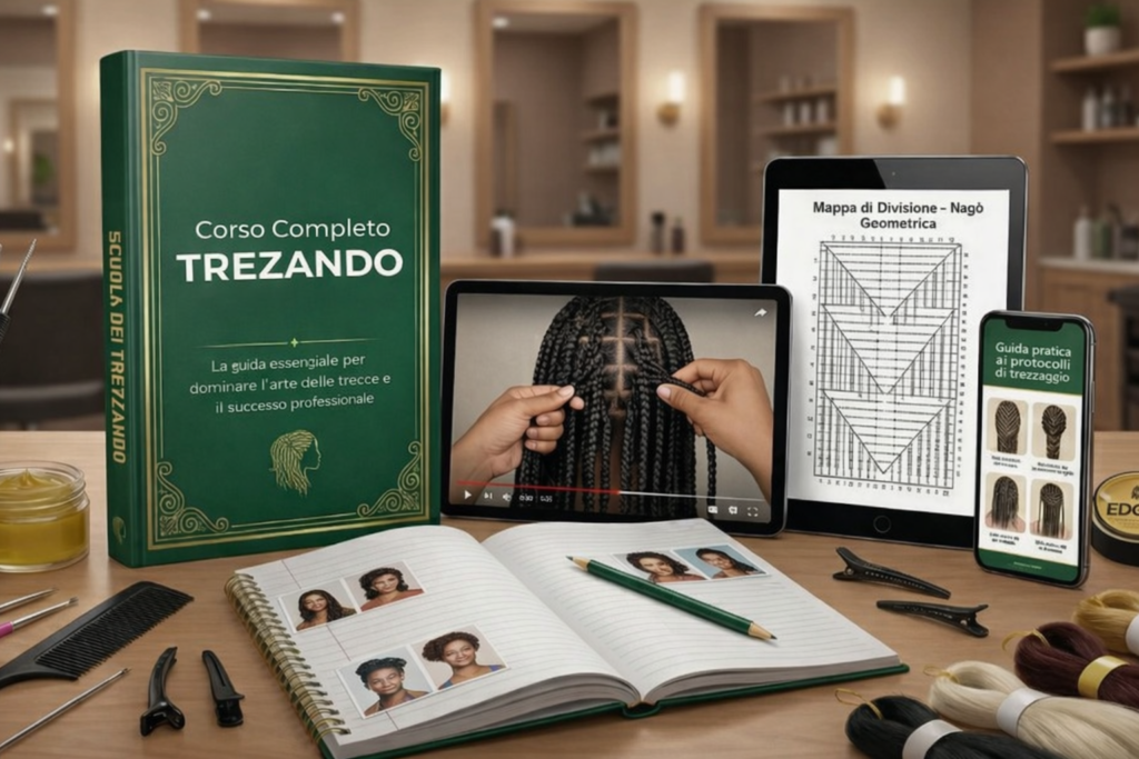 Il successo nelle trecce non è un dono, ma l’applicazione precisa di un metodo. In questo corso imparerai tutto attraverso video-lezioni didattiche, dimostrate passo dopo passo su modelli reali e teste di pratica, con primi piani dei dettagli per non perdere nessun movimento.
